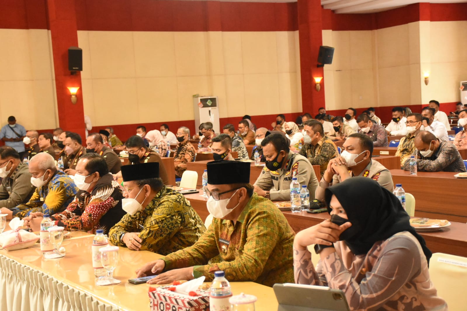 Forkopimda Madina saat mengikuti Rapat Koordinasi Pemberantasan Korupsi Terintegrasi di Pemerintahan Kabupaten/Kota Se-Tabagsel, Rabu (22/12/21). (Foto: istimewa)