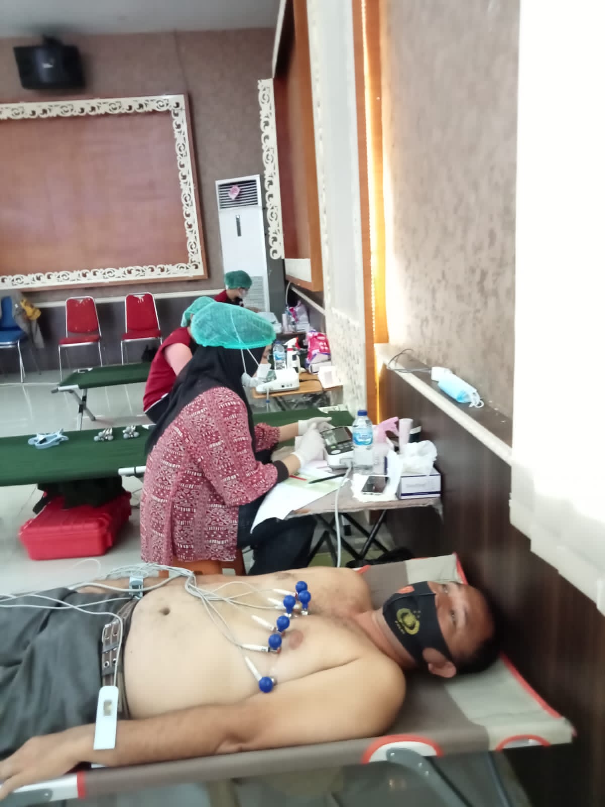 Pemeriksaan Kesehatan Berkala Semester II TA 2021untuk 4 Polres se-Tabagsel dan personil Yon C Brimobdasu di Polres Tapsel, Rabu pagi (18/8/2021) di Aula Pratidina Mapolres Tapsel. (Foto:Ty)