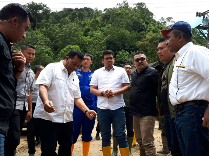 Ke Lokasi Banjir bandang Bobby di dampingi Bupati Madina Drs Dahlan Hasan Nasution, Kapolres Madina AKBP. Irsan Sinuhaji, Kepala BNNK Madina, Anggota DPRD Sumut H Burhanuddin Siregar, Sutrisno Pangaribuan dan para OPD Madina.