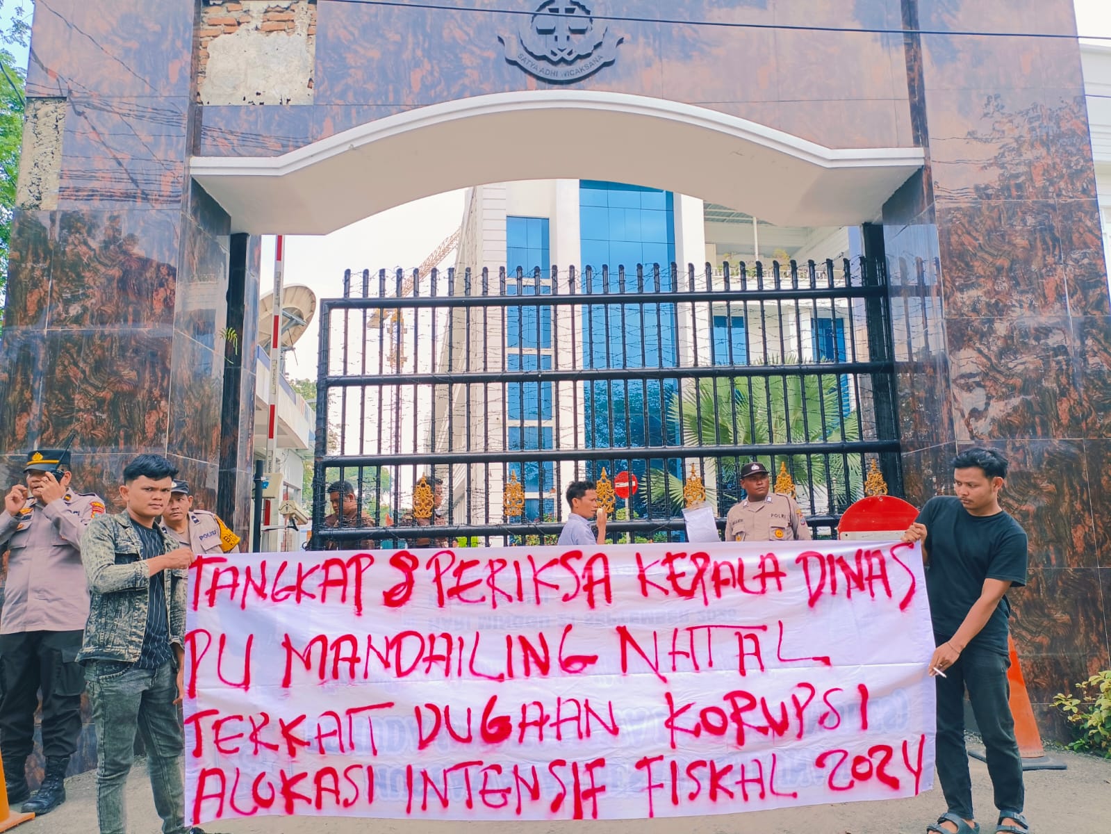 Pertama, mereka meminta Kepala Kejaksaan Tinggi Sumatera Utara (Kejati Sumut) agar segera memanggil dan memeriksa Kepala Dinas Pekerjaan Umum Mandailing Natal, Pejabat Pembuat Komitmen (PPK), dan seluruh pihak terkait dengan penggunaan dana AIF Tahun 2024.