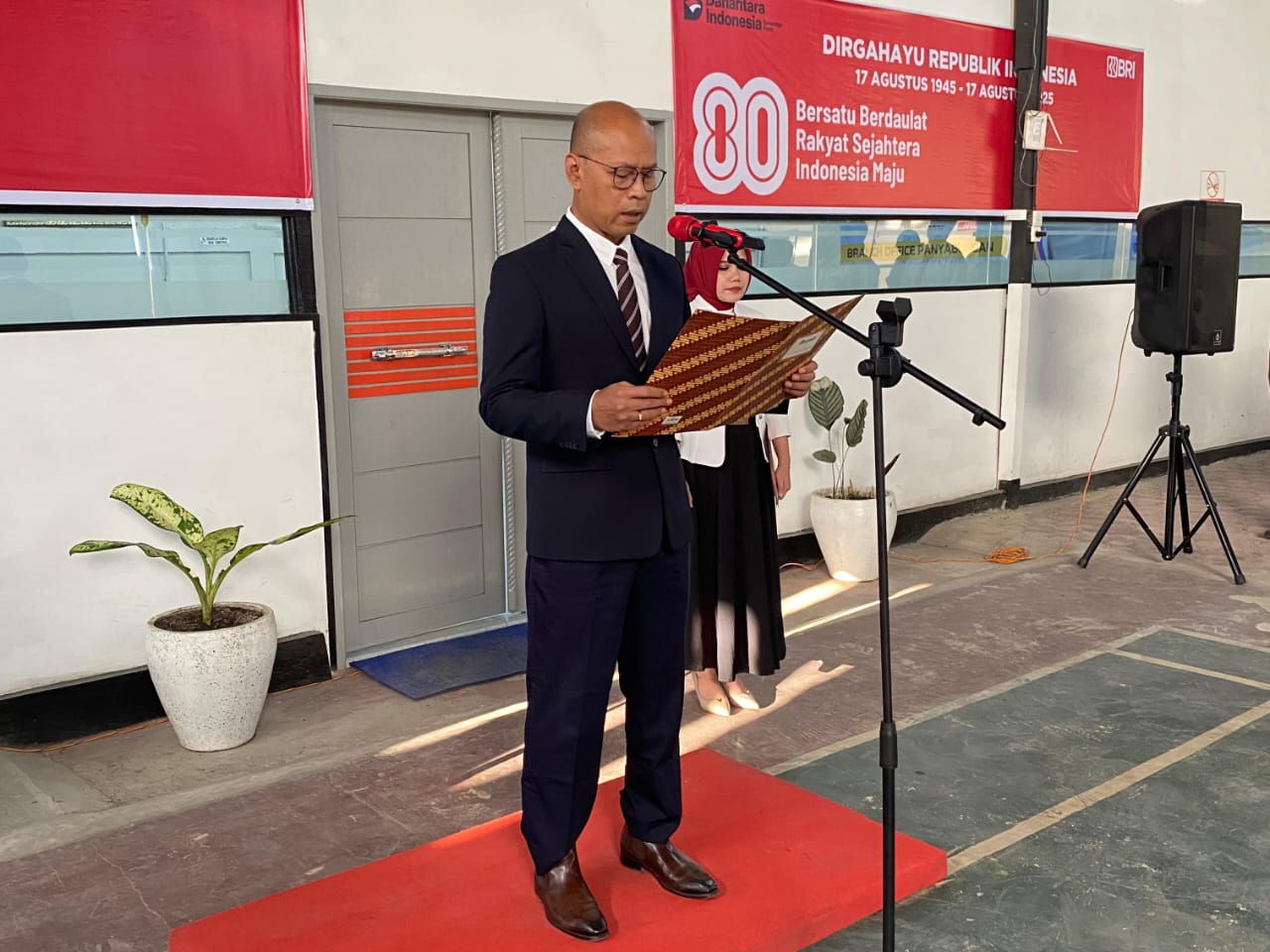 Upacara berlangsung khidmat di parkir belakang kantor Cabang Panyabungan, jalan Willem Iskandar Panyabungan, Kota Panyabungan, Kabupaten Mandailing Natal, Minggu (17/8/2025).