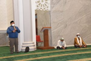 Bupati Tapanuli Selatan (Tapsel), H. Dolly Pasaribu, S.Pt, MM seusai salat Subuh berjamaah di Masjid Syahrun Nur, Komplek Perkantoran Pemkab Tapsel, Sabtu (18/9). (Foto:Ty)