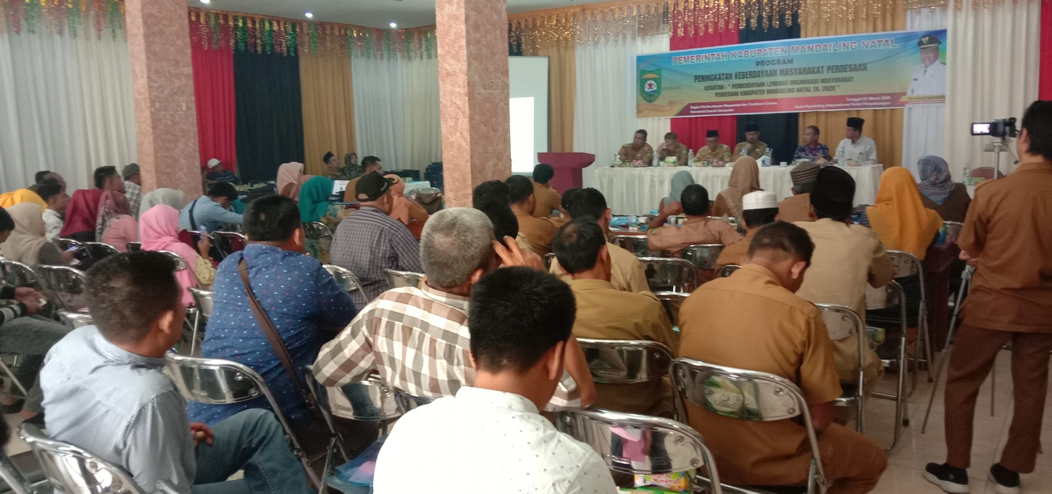 Kegiatan ini dihadiri oleh para OPD, para Camat, serta diikuti sebanyak Seratus Lima puluh orang dari perwakilan Kelurahan dan Desa di 23 Kecamatan yang ada di Kabupaten Mandailing Natal, dengan menghadirkan nara sumber enam orang yaitu, Sekretaris Daerah Kabupaten Mandailing Natal, Gozali Pulungan, SH, MH, Drs, Marwan Bakti, M.Si, Alamulhaq Daulay, SH, drg Ismail Lubis, Dr. M Daud Batubara, M.Si, dan Abu Hanifah, SH, yang dipandu dua moderator, Drs. M. Syafeii Lubis, dan Drs. Hasan Asri Batubara.