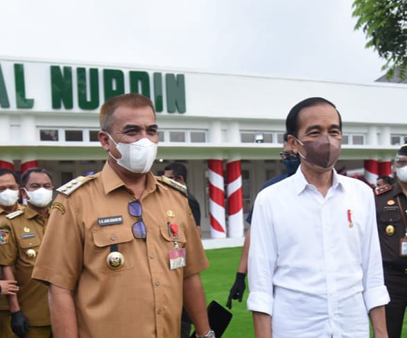 Bupati Madina Sukhairi Nasution saat menghadiri kunjungan Presiden Joko Widodo di Medan, Kamis (16/09/21). (Foto: istimewa)