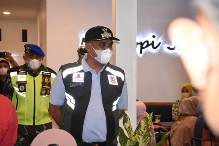 bbnewsmadina.com, Bupati Mandailing Natal, H. Muhammad Jafar Sukhairi Nasution, yang didampingi beberapa pimpinan OPD seperti Kepala BPBD, Kepala Satpol, Kepala Dinas Komunikasi dan Informatika beserta unsur TNI dan Polri melaksanakan razia tentang penerapan protokol kesehatan demi menurunkan level Pemberlakuan Pembatasan Kegiatan Masyarakat (PPKM) di Kabupaten Mandailing Natal, Rabu malam (08/09/2021).