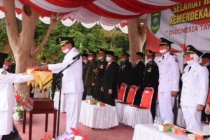 bbnewsmadina.com, Pemerintah Kabupaten Mandailing Natal sukses melaksanakan Upacara Penaikan Bendera dalam rangka memperingati detik-detik Hari Ulang Tahun Kemerdekaan Republik Indonesia ke-76, Selasa (17/08/21), di Taman Raja Batu Blok C Komplek Perkantoran Payaloting Panyabungan.