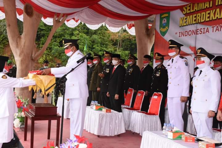 Upacara Penaikan Bendera detik-detik Hari Ulang Tahun Kemerdekaan Republik Indonesia ke-76 untuk tingkat Kabupaten Mandailing Natal, dimulai tepat pukul 08.00 WIB menerapkan protokol kesehatan dengan ketat.