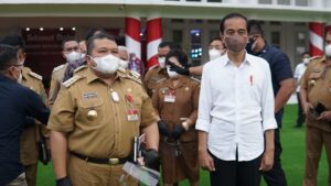 Bupati Tapsel Dolly Pasaribu bersama Presiden RI Jolo Widodo usai mengikuti Rapat di aula Tengku Rizal Nurdin, Medan Kamis (26/09/21). (foto: istimewa)