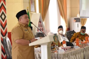 Bupati Tapanuli Selatan (Tapsel), H.Dolly Pasaribu, SPt, MM pada acara silaturahmi Majelis Ulama Indonesia (MUI) Provinsi Sumut, Selasa (29/6) di Aula Sarasi, Lantai III, Kantor Bupati Tapsel. (Foto:Ty)