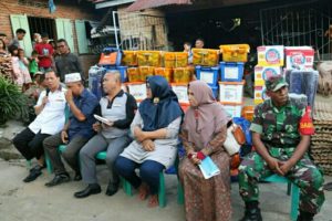 Sedangkan bantuan dari Dinas Sosial yang diserahkan Bupati, berupa matras biru 36 lembar, tenda gulung biru 12 lembar, selimut 36 buah, peralatan makan 5 buah, familiy kid 24 buah, sajadah 12, seragam sekolah SD 8, seragam sekolah SMP 6 potong, seragam sekolah SMA 3 potong, training pendek 5 baju dan 3 celana serta training panjang 2 potong.
