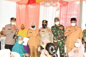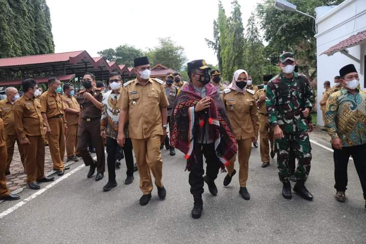 Kapoldasu Irjen Pol. Drs. Panca Putra Simanjuntak didampingi Bupati dan Wakil Bupati bersama Forkompinda saat meninjau vaksinasi di Mapolres Madina, Selasa (21/09/21). (Foto: istimewa)
