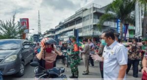 bbnewsmadina.com, Usai melakukan Apel Bersama Forkopimda,Tokoh Agama,Tokoh Masyarakat,Tokoh Pemuda dalam rangka kampanye Adaptasi Kebiasaan Baru (AKB) di Alaman Bolak Padang Nadimpu, Wali Kota Padangsidimpuan bersama Forkopimda melanjutkan aksi membagikan masker dan brosur peraturan Wali Kota tentang Adaptasi Kebiasaan Baru, Kamis (10/9) di Pusat Kota Padangsidimpuan.