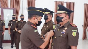Kejari Mandailing Natal saat melaksanakan Sertijab Kacabjari Natal, Kamis (21/04/22). (Foto:SNP)