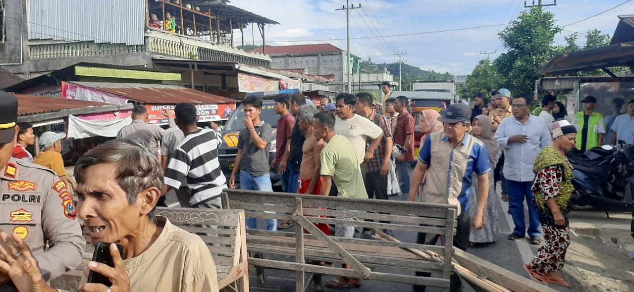 Dimana ada ratusan massa yang berkumpul dan memblokir jalan raya Lintas Sumatera atau jalan nasional sekitar pukul 15.00 di Desa Hutapuli.