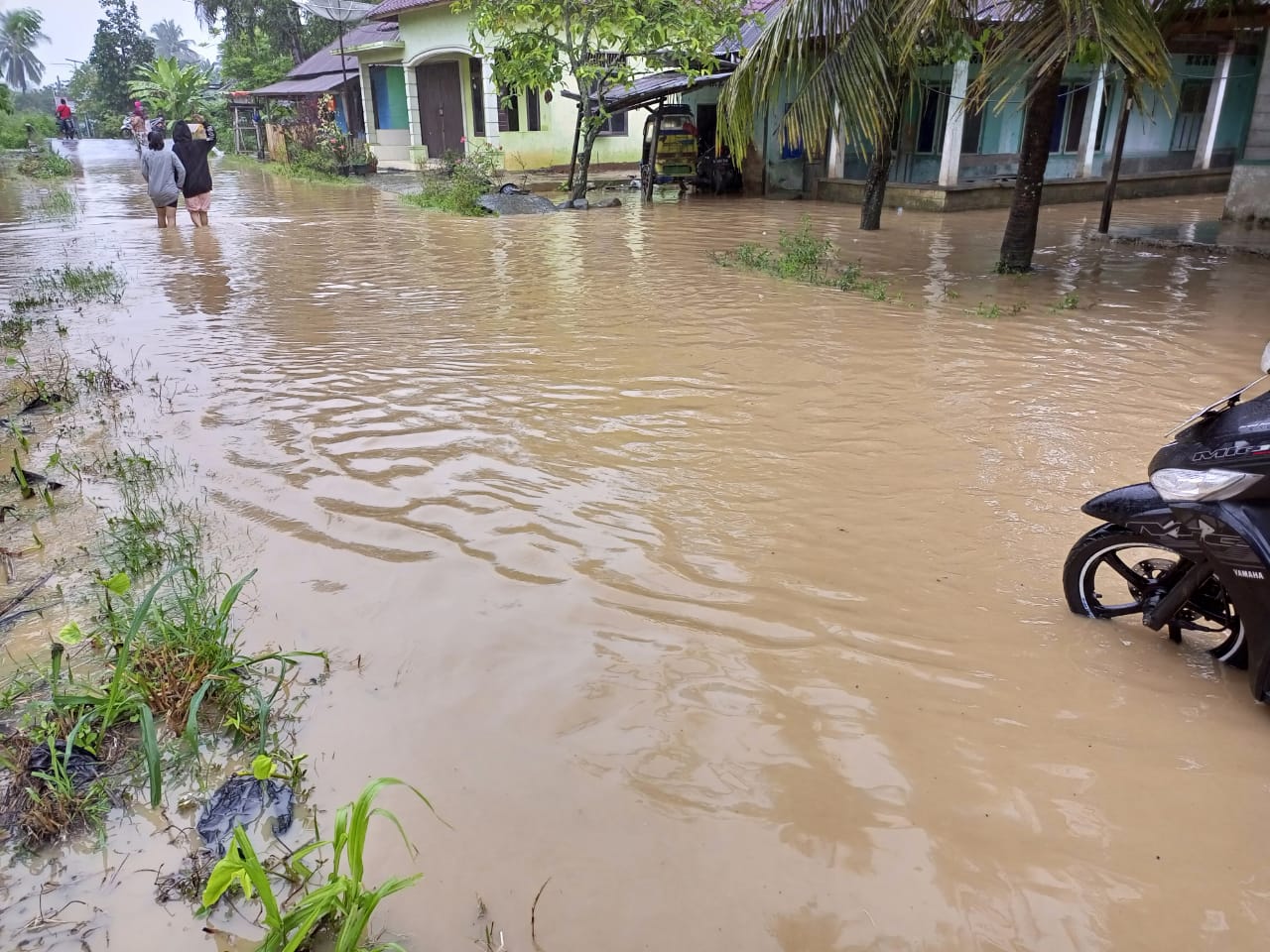 Desa Adianjior juga ikut dilanda banjir akibat tingginya curah hujan yang melanda Mandailing Natal pada Jum’at (17/12/21) sore hingga Sabtu (18/12/21) pagi. (Foto:SNP)