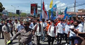 Kemudian, pasangan Sofwat-Beir bersama ribuan rombongan relawan simpatisan pendukungnya berjalan kaki dari depan Masjid Raya Al Qurro Wal Huffaz (Masjid Raya Panyabungan red,), menuju ke kantor KPUD Madina di Jalan Merdeka Kelurahan Kayu Jati Kecamatan Panyabungan.