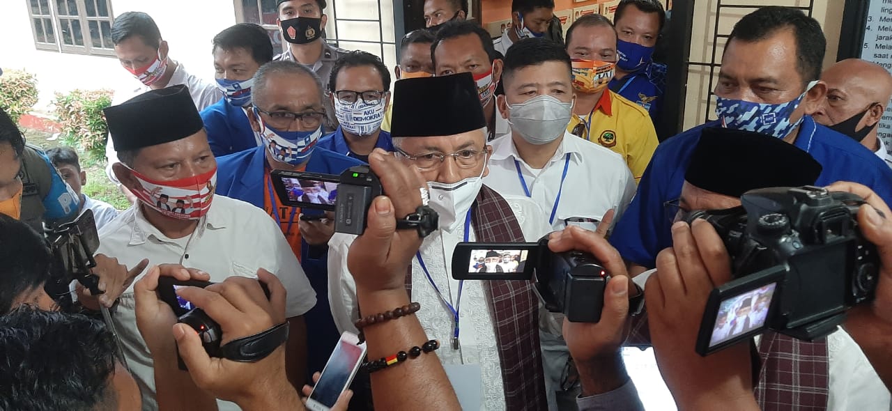 Usai menyerahkan berkas pendaftaran, H. M Sofwat pun ditanyai oleh sejumlah wartawan mengenai hasil pemeriksaan Swab Covid-19.