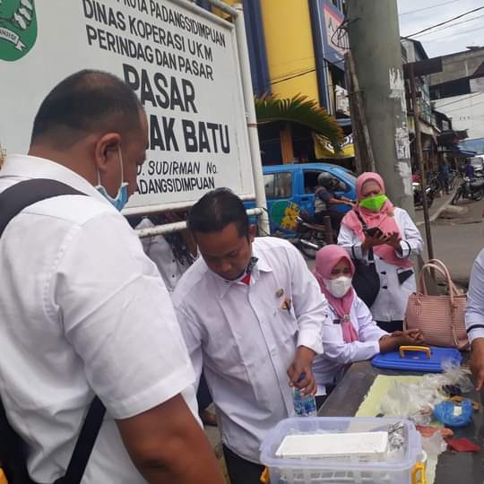 Dinas Perdagangan Pemko Padangsidimpuan saat Monitoring Pengawasan Bahan Berbahaya di seputaran Pasar Pajak Batu Kota Padangsidimpuan, Rabu (31/3). (Foto:Ty/ Istimewa)