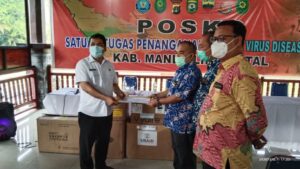 Penyerahan APD dan Ventilator ini diterima Kadis Kesehatan Kabupaten Mandailing Natal dr. Syarifuddin Nasution di Posko Satgas Penanganan Covid-19, Bagas Godang Mandailing Natal, Desa Purba Baru.