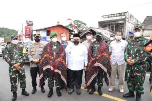 Ketua Tim Pengawasan dan Evaluasi TMMD ke-111, Mayjend TNI Eka Wiharsa melakukan kunjungan tim Wasev TMMD ke-111 TA 2021 Kodim 0212/Tapsel (Ts) di Kelurahan Pasar Sitinjak, Kecamatan Angkola Barat, Kabupaten Tapanuli Selatan, Jumat (2/7) pagi. (Foto:Ty)