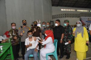 “Habis divaksin, tetap 3M yakni, memakai masker, mencuci tangan, dan menjaga jarak, ya. Jangan dikira sudah divaksin gak bisa ketularan (Covid-19),” kata Kapolres.