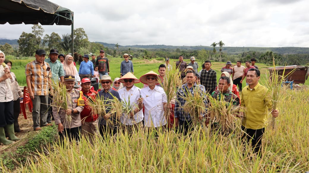 Bupati Tapsel Gus Irawan Pasaribu mengikuti panen raya ini dari areal persawahan anggota Kelompok Tani (Poktan) Saba Dano Godang, Desa Pargarutan Julu, Kecamatan Angkola Timur.