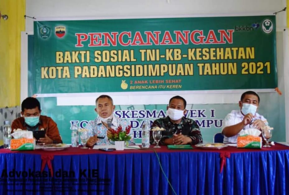bbnewsmadina.com, Bertempat di Aula Puskesmas Kelurahan Wek l Kecamatan Padangsidimpuan Utara (16/9), Dinas Pengendalian Penduduk dan KB menggelar kegiatan Pencanangan Bhakti Sosial TNI – KB – Kesehatan Kota Padangsidimpuan Tahun 2021.