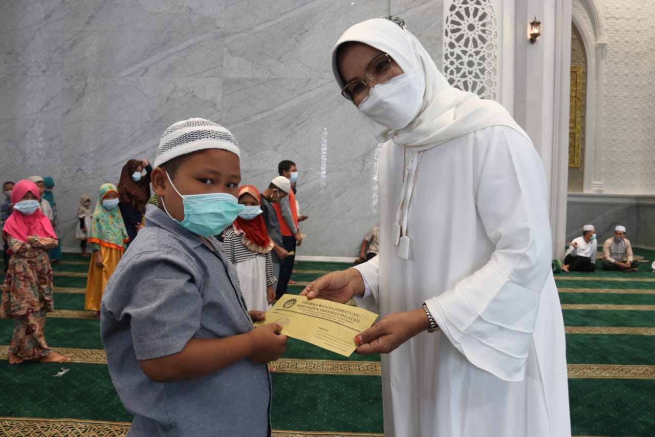 Dharma Wanita Persatuan (DWP) Kabupaten Tapanuli Selatan (Tapsel), gelar aksi sosial dengan berbagi tali asih dan kasih sayang, Jumat (7/5) pagi di Masjid Agung Syahrun Nur. Foto:Ty
