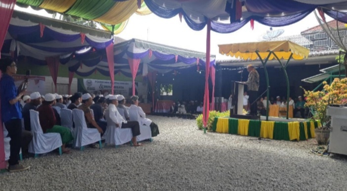 Wakil Ketua DPRD Sumut dari Partai Gerindra, H Harun Mustafa Nasution ketika berpidato dihadapan masyarakat dan konstituennya dalam acara reses sekaligus syukuran atas terpilihnya beliaun menjadi Wakil Ketua 1 DPRD Sumut, Minggu (15/12).(Foto:LBS)