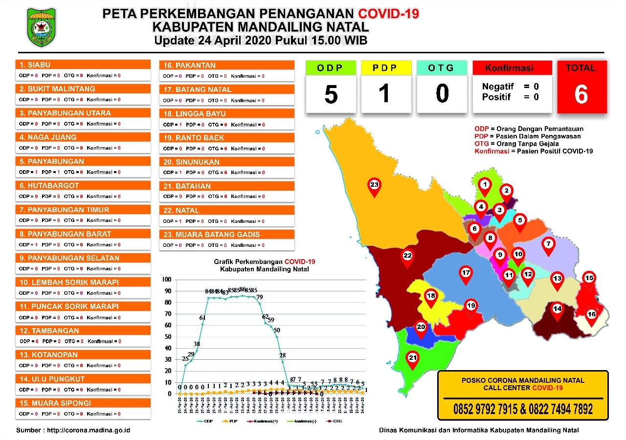 Peta Perkembangan Penanganan Covid-19 Madina per Tanggal 24 April 2020. (Foto: Kominfo Madina)