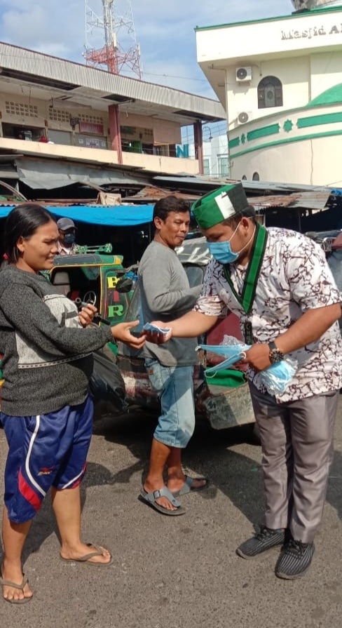 Dukungan dibuktikan dengan puluhan mahasiswa yang tergabung di HMI dan KOHATI Komisariat Tamari membagi-bagikan ratusan masker untuk warga di pusat pasar, Rabu (30/9).