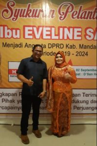 Eveline Sago yang diusung dari Partai Hati Nurani Rakyat (Hanura) tersebut telah mengucapkan janji dan sumpahnya di gedung serbaguna Desa Parbagunan bersama ke 40 anggota DPRD Madina lainnya untuk periode 2019-2024.