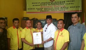 Bakal Calon Bupati Madina 2020 – 2024, H. M Jakfar Sukhairi Nasution saat menyerahkan formulir pendaftaran ke Partai Berkarya (Foto : DN)