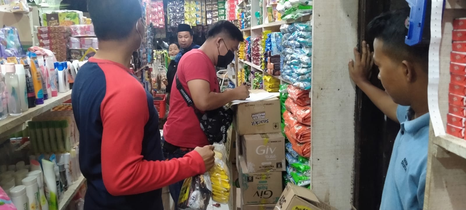 Jatanras Reskrim beserta tim dari Polres Madina saat melakukan pengecekan barang kadaluwarsa di toko (F M) dan toko (Q) Kamis malam (20/01/22). (Foto:SNP)