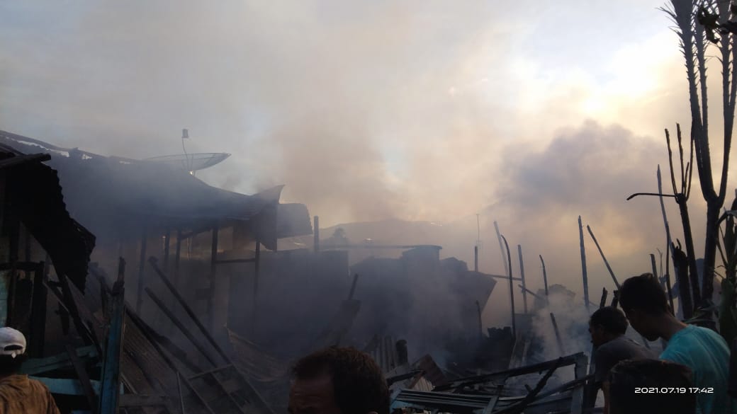 Jelang Idul Adha 1442 H, 6 unit rumah hangus dilalap sijago merah di Banjar Pagur, Kelurahan Panyabungan III, Senin (19/07). (Foto:MS)