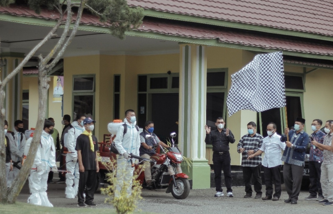 Wali Kota Padangsidimpuan Irsan Efendi Nasution, SH lepas tim penyemprotan Disinfektan ke Sekolah sekitaran Kota, Sabtu (4/9). (Foto: Ty)