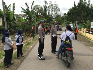 Personil Polres Tapsel bersama tim gabungan saat menggelar operasi yustisi di Kecamatan Angkola Selatan, Rabu (29/09/21). (Foto:Ty)