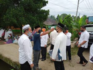 Seusai melaksanakan Sholat Idul Adha Kapolres Tapsel bersama dengan Bupati Tapsel berserta rombongan unsur forkopimda Kabupaten Tapanuli Selatan bersilaturahmi di salah satu rumah warga di Desa Holbung Kecamatan Angkola Muara Tais, sekaligus memberikan sosialisasi tentang penerapan Adaptasi Kebiasaan Baru (AKB) kepada warga di Desa tersebut.