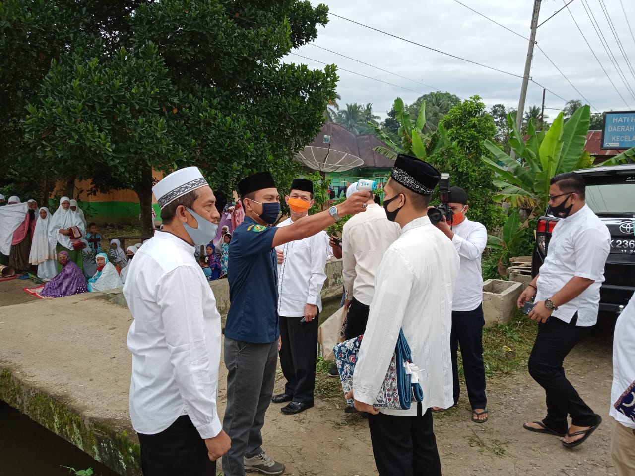 Pemkab Tapsel terapkan protokol kesehatan saat melaksanakan sholat Idul Adha 1441 H, Jum’at (31/07). (Foto:Ty)