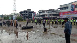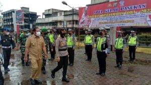 Kapolres Padang Sidempuan bersama Wali Kota Padang Sidempuan saat memeriksa personil OPS Keselamatan Toba 2022 pada apel gelar pasukan dihalaman bolak, Selasa (01/03/22). (Foto:Ty)