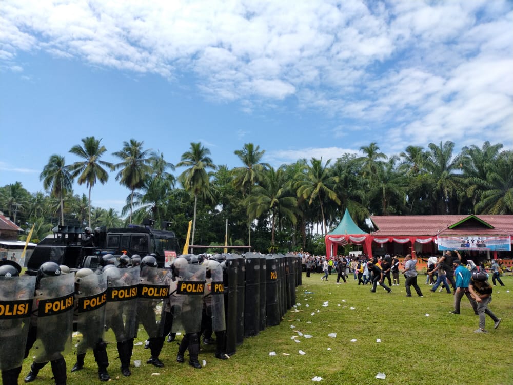 Kerusuhan itu, terjadi pada, Kamis (30/7) akibat pendukung Paslon “Pisang” tidak terima hasil penghitungan suara di tingkat TPS yang dilakukan oleh KPPS.