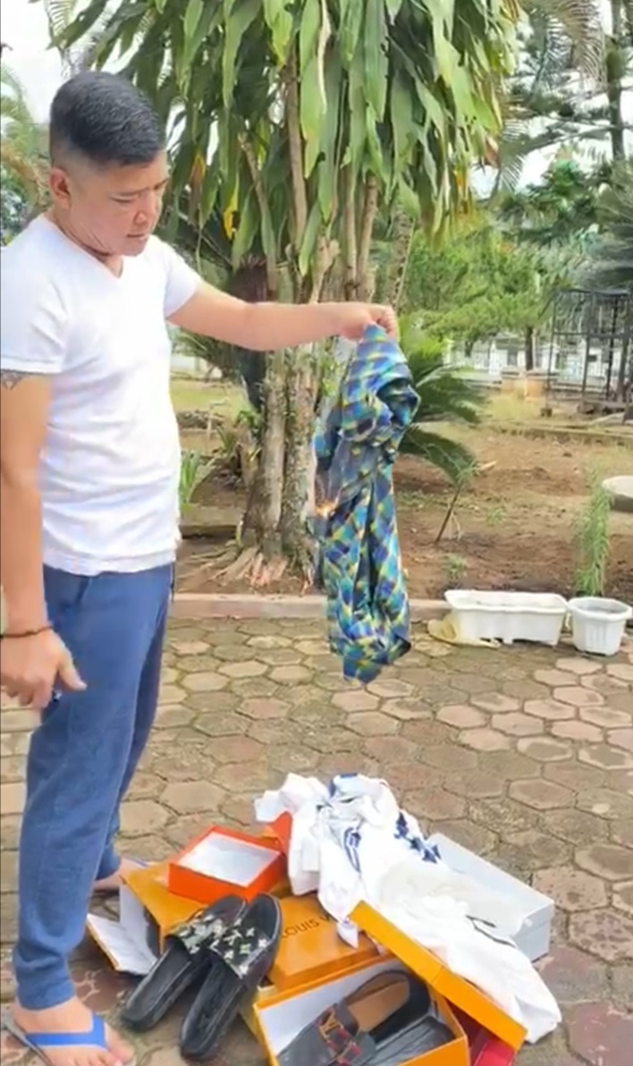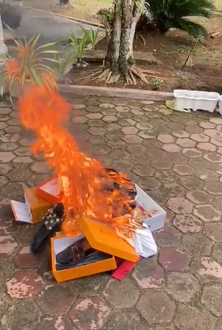 “Untuk itu sebagai bentuk kecaman terhadap pernyataan itu saya membakar semua barang-barang milik saya yang bermerk dari Francis seperti, Louis Viton (LV), Harmes, Lacoste, dan lainnya, walaupun barang ini merupakan barang-barang kesayangan saya.”
