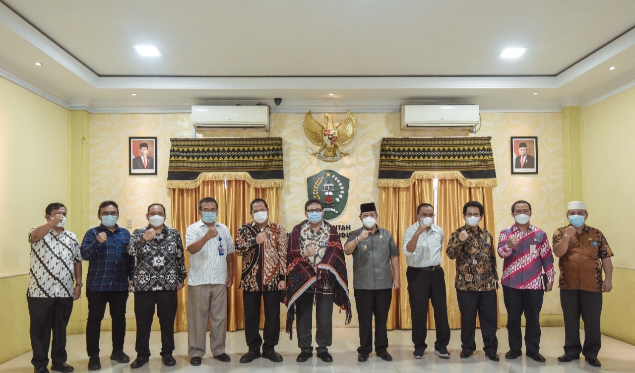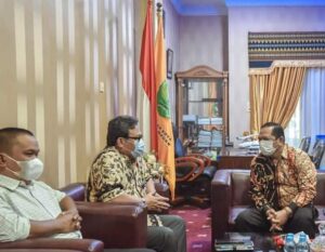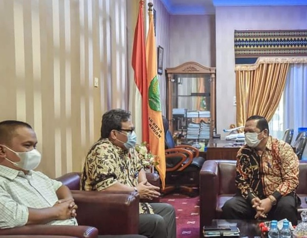 Wali Kota Padang Sidempuan Irsan Efendi Nasution, SH saat menerima Kepala Perwakilan BPKP Sumut Kwinhatmaka yang didampingi Korwas Akuntabilitas Pemda (APD) Rohmad Basuki diruang kerjanya, Kamis (20/01/22). (Foto:Ty)