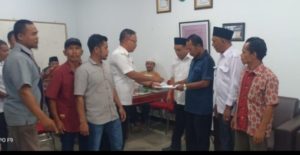 Terlihat Inspektorat Madina ketika menyerahkan hasil LHP kepada BPD dan Masyarakat Desa Tambangan Kecamatan Tambangan di ruangan asisten 1 Pemkab Madina, Rabu (4/3).(Foto:LBS)