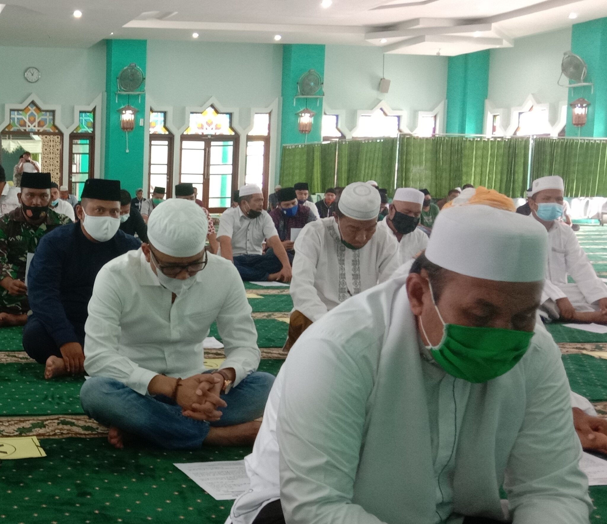 Ketua DPRD Madina Erwin Efendi Lubis SH saat mengikuti Dzikir dan Doa Bersama di Mesjid Agung Nur Alan Nur, Jum’at (06/11). (Foto:DN)