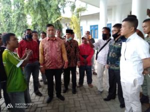 Ketua DPRD Madina Erwin Efendi Lubis, saat menerima massa parbetor dihalaman Kantor DPRD Madina, Kamis (16/04). (Foto:MS)