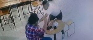 Jeffry Barata Lubis saat di aniaya sekolompok preman yang diduga dari salah satu Ormas di lopo Mandailing Coffe, pada Jum’at malam (04/03/22). (Foto: rekaman CCTV)