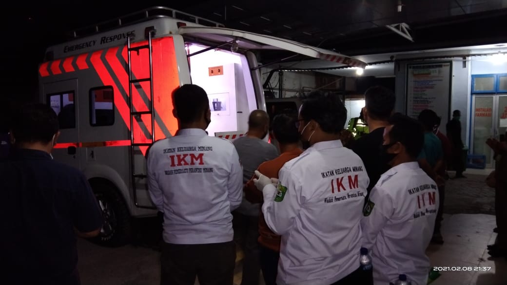 Salah satu pasien bus pariwisata yang meninggal dunia saat dibawa menuju Kabupaten Agam, Senin malam, (08/02/21). Foto: MS