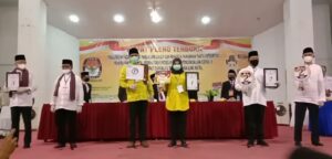 Para pasangan calon Bupati dan Wakil Bupati pada Pilkada Madina Tahun 2020 usai pencabutan nomor urut, di gedung serbaguna, Kamis (24/09). (Foto:DN)