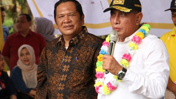 Gubernur Sumatera Utara Edy Rahmayadi didampingi Wali Kota Padangsidimpuan Irsan Efendi Nasution saat meresmikan Bantuan Stimulan Perumahan Swadaya (BSPS) Kementerian PU-PR di Padangsidimpuan, Minggu (23/02). (Foto:Ty)